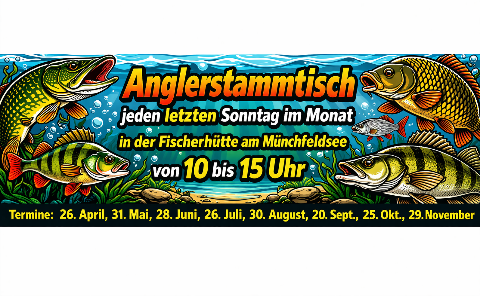 ACHTUNG! Es geht wieder los – unser Anangeln findet am Samstag, 04. April ab 14 Uhr am Münchfeldsee statt. Die Kartenausgabe erfolgt bereits ab 12.30 Uhr.